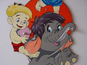 Kinder Garderobe - Zwei abgerundete Edelstahl-Pinne dienen zum Aufhängen von Kinderkleidung.
